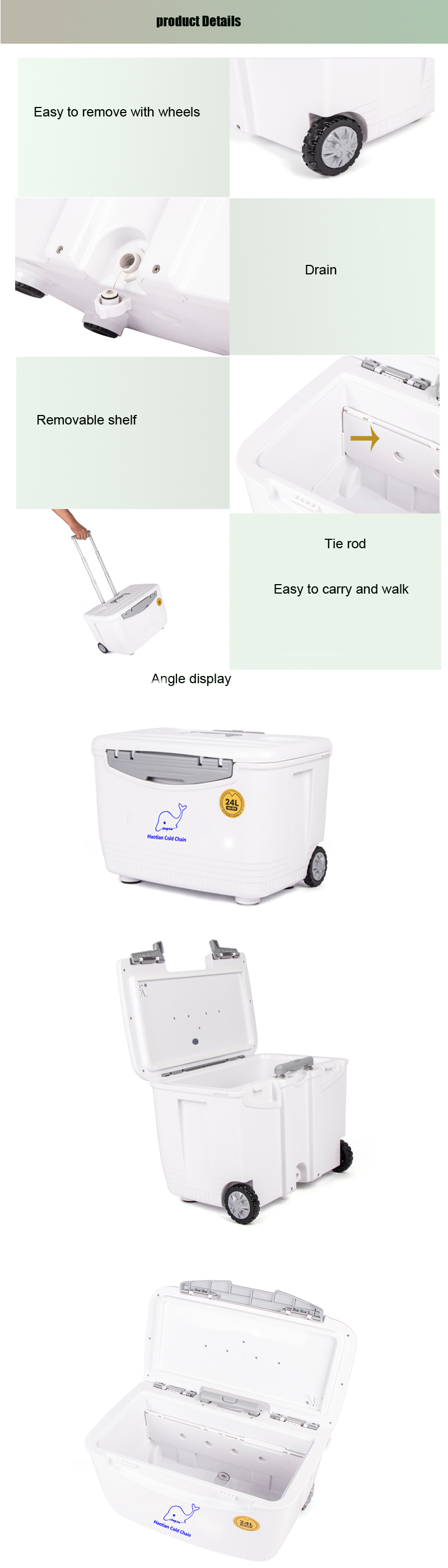 The 24L vaccine cooler shipping box is specially designed for vaccine,medicine,blood plasma,biology products short storage and trans-shipment without electric power.It can realize to control the temperature from 0ºC to 10ºC,-12ºC to -18ºC/-36ºC/-55ºC or more according to change the quantity of Ice Plate inside.New and environment friendly raw materials,various humanization design,convenient and practical make it be the best choice in blood donation vehicle,blood bank stations,clinics,etc.