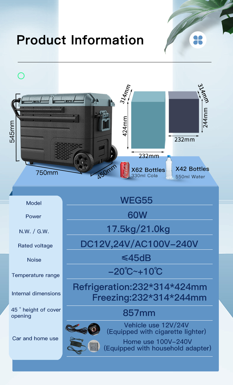 ❄DC compressor refrigerator, AC to DC adaptor included.
