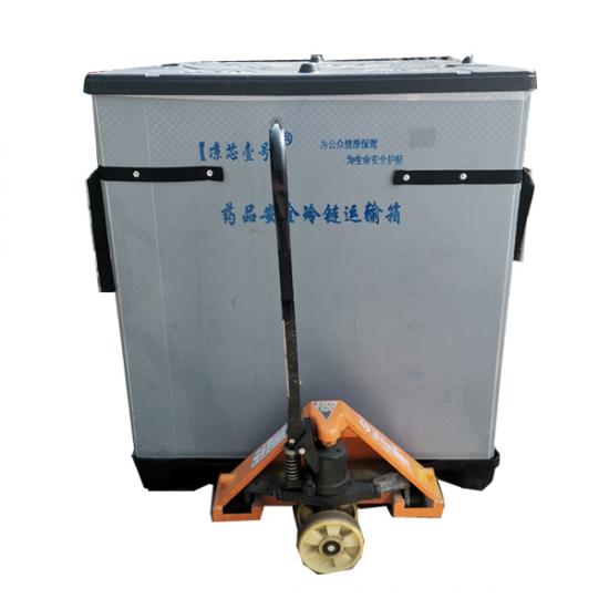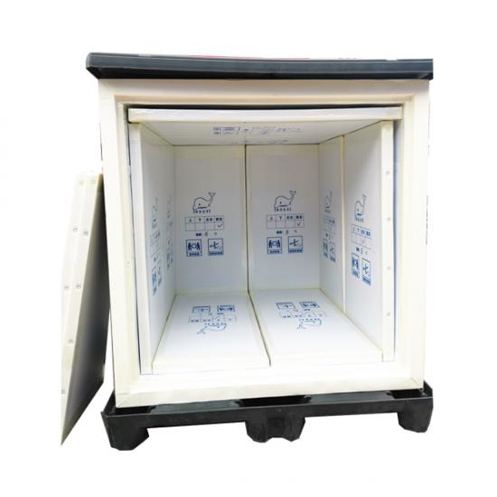 Loading the goods, the pallet thermal box can work with the forklift in any direction without manually moving the goods from the existing pallet into the shipper, and then assembling the insulated pallet container with insulation boards.
