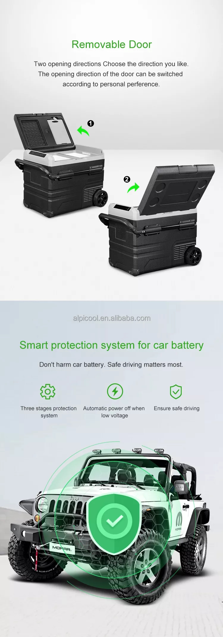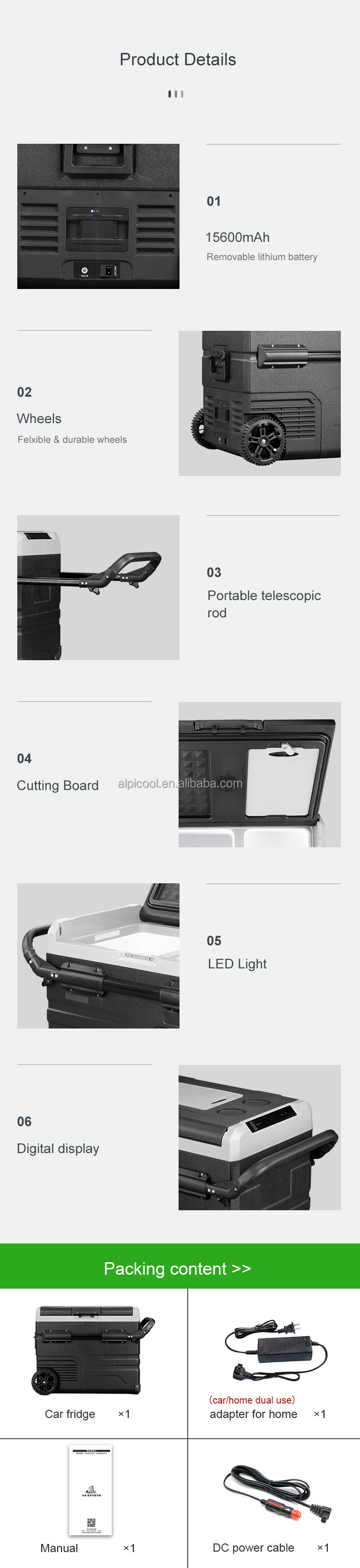 6.Option for rechargeable portable battery pack, LG compressor